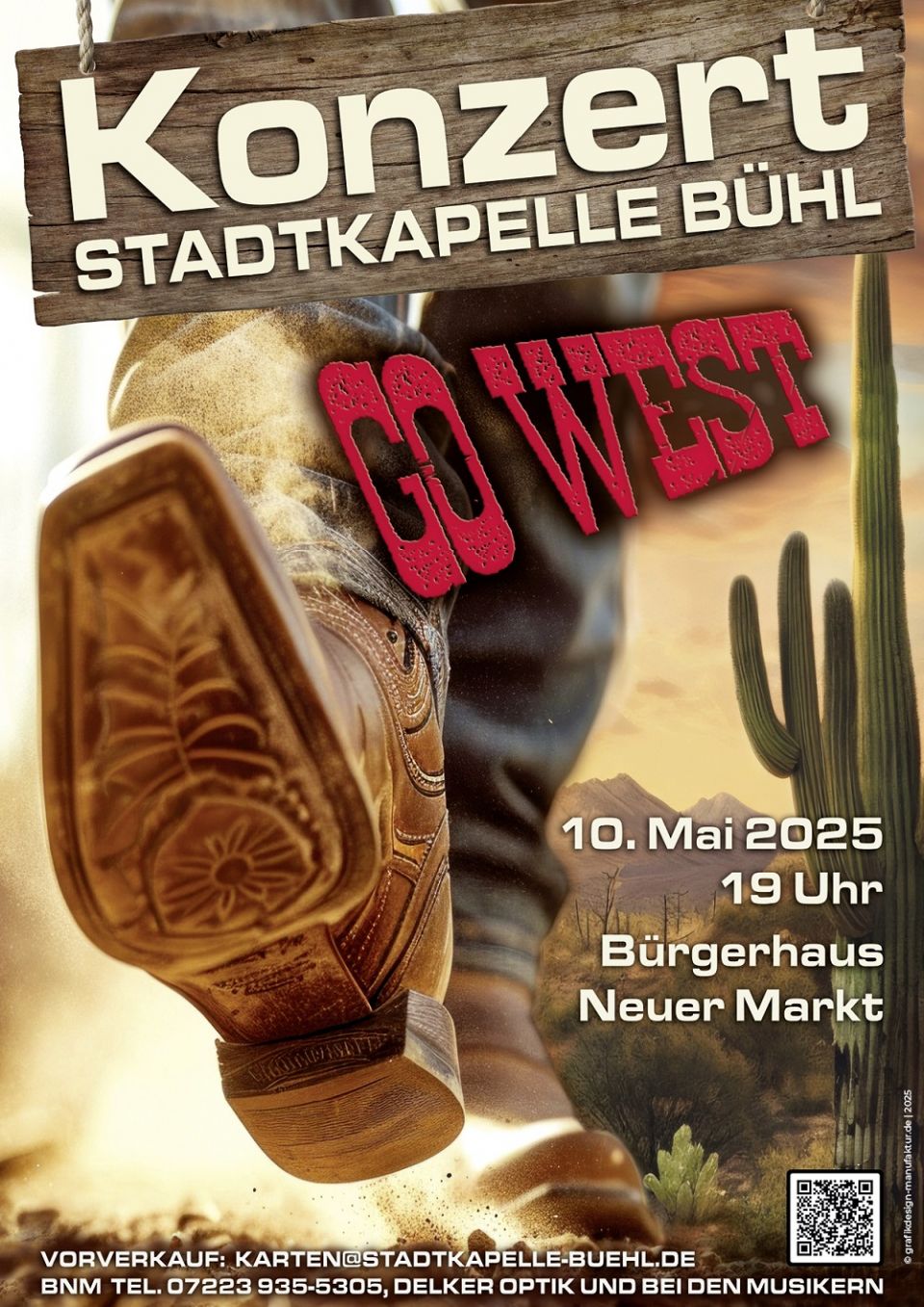 „Go West“ – ein legendärer Ruf, der ursprünglich die Pioniere im 19. Jahrhundert motivierte, sich auf eine mutige Reise in den unbekannten Westen der USA zu begeben. Auf der Suche nach Reichtum, Freiheit und neuen Horizonten, begaben sich diese Abenteurer in unbekanntes Terrain. Dieser Spirit und dieses Motto prägen auch das Jahreskonzert der Stadtkapelle Bühl, das am Samstag, den 10. Mai 2025 im Bürgerhaus Neuer Markt stattfindet.